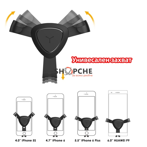 Air Vent Mount е с универсална адаптация- поставете смартфон за 1 секунда, лесен достъп до командите на вашите мобилни телефони.