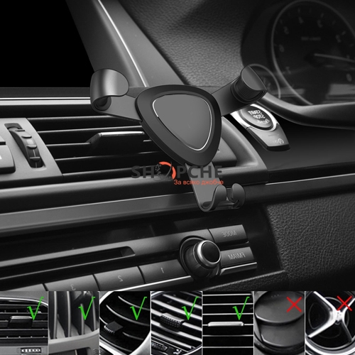 Air Vent Mount е с иновативен дизайн, който използва Gravity Drive System, когато мобилният телефон влезе в долната опора на държача на телефона, вътрешният гравитационен механизъм ще се задвижва.