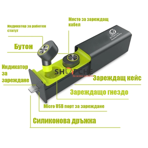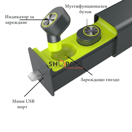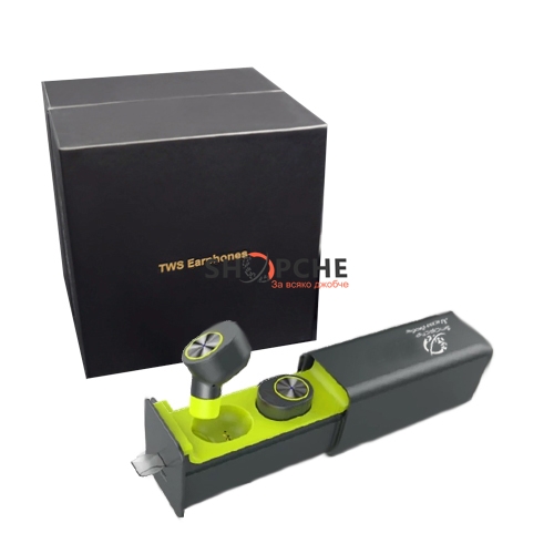 TWS Earphones е с външна батерия , с която можете лесно да заредите едната слушалка докато ползвате другата.