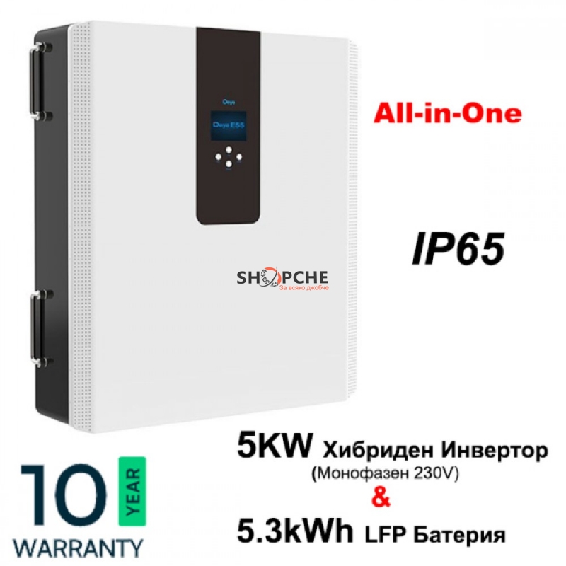 👉 Присъедини се към Viber общността5kW Deye Хибриден Инвертор & 5.3kWh LFP Батерия All In One System 10г. Гаранция