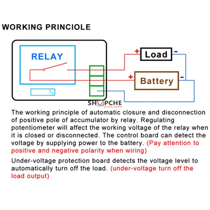 👉 Присъедини се към Viber общносттаТози модул осигурява защита и контрол върху батерията или акумулатора при работа със системи на 12 волта. Предлага функция нисковолтова защита, която автоматично изключва захранването, ако напрежението на батерията падне под определено напрежение. Осигурява и функция за автоматично възстановяване и превключване на захранването, когато напрежението на батерията се възстанови до нормалните стойности. Модулът също може да се използва при зарядни устройства за защита и контрол на зареждането на батерията, с което осигурява правилно и безопасно зареждане.