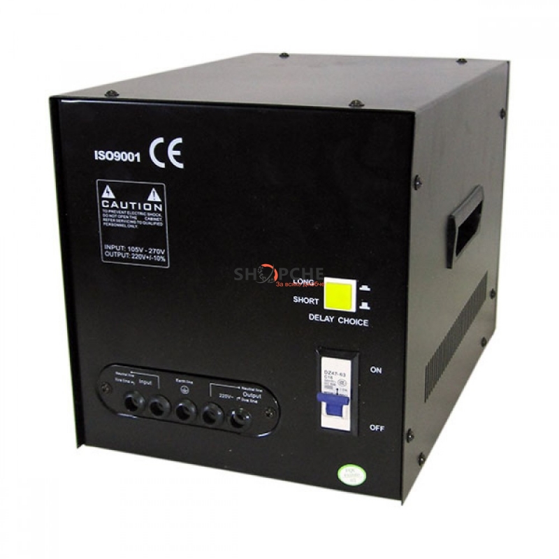 Стабилизатор на мрежово напрежение с мощност 5000VA. Осигурява постоянно напрежение на включените към него уреди.