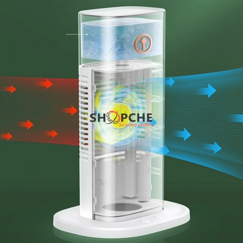 Уредът понижава температурата чрез активиране а водната помпа, а вентилатора я разпръсква в цялото помещение равномерно.