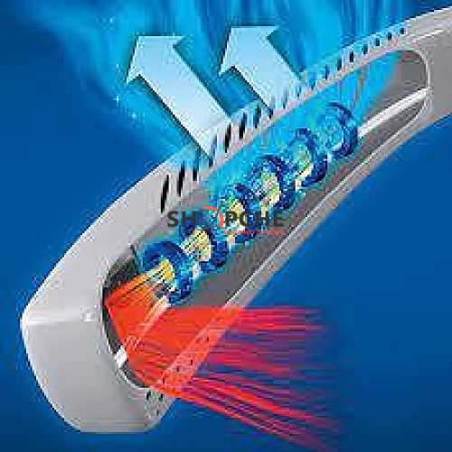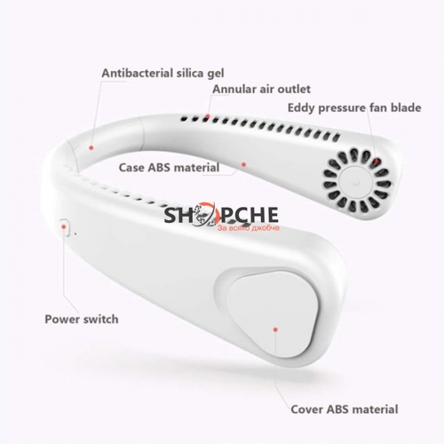 - Дизайн и комфорт: Компактен и лек дизайн с 78 въздушни дюзички за равномерно охлаждане. Поставя се лесно на врата и не утежнява раменете.