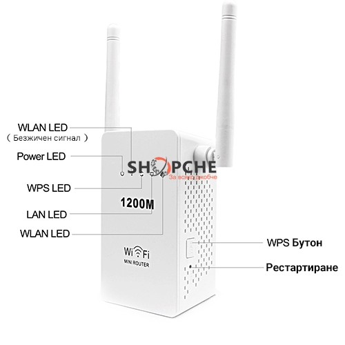 LED индикатори за Power, WPS, Wi-Fi, LAN, WAN