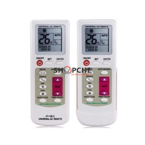 KT-109II e на принципа на цифрови кодове  и дава възможност за работа със 109 модела климатици на различни марки.