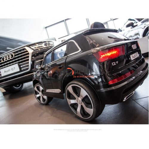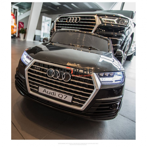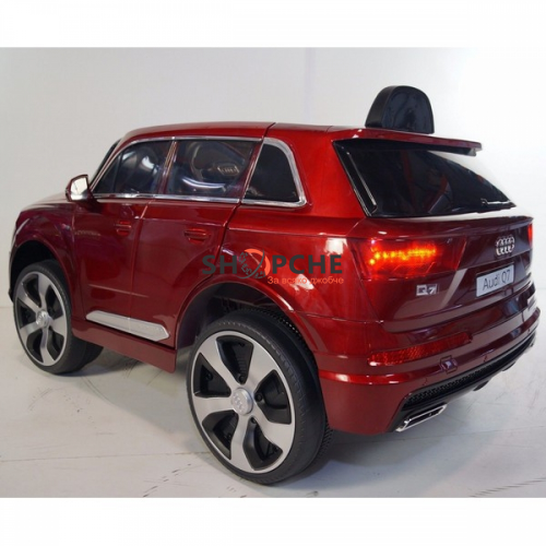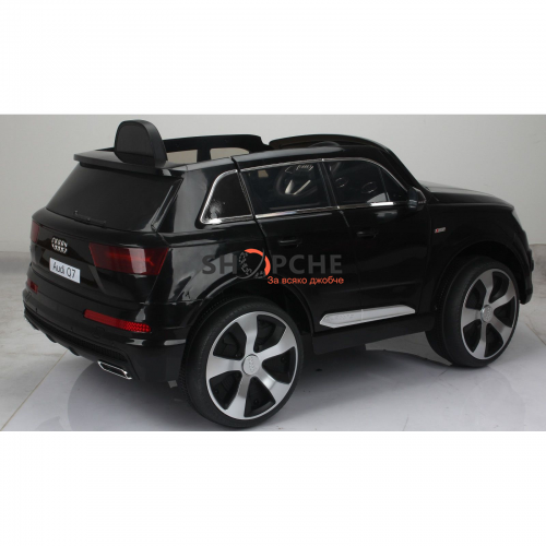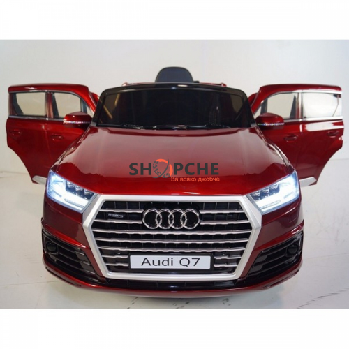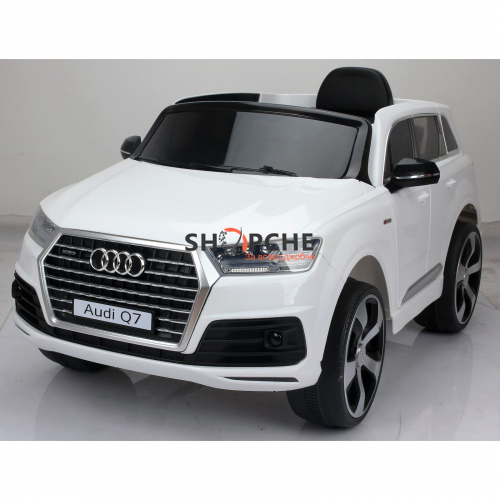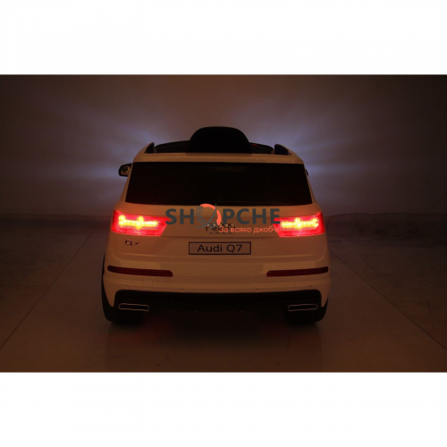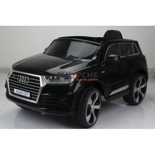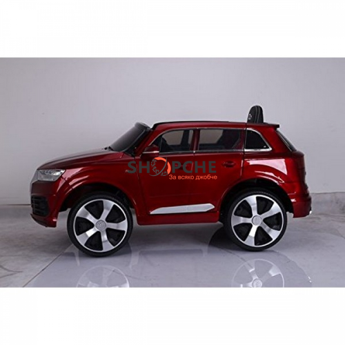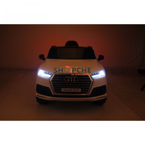 Акумулаторен джип Audi Q7 ще донесе много радост на всички деца. Моделът е лицензиран с много екстри, като едни от тях са меките гуми от EVA пяна и кожената седалка за максимален комфорт при шофиране!