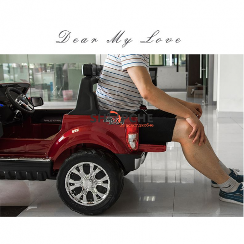 Акумулаторен джип Ford Revenger с MP4, 4x4, меки гуми, кожена седалка, металик боя и място за две деца!