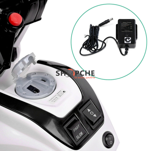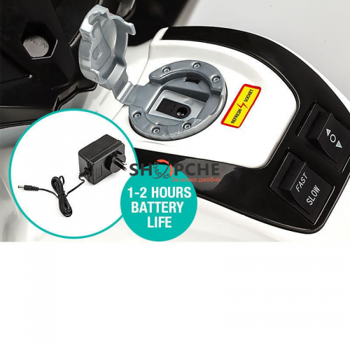 Акумулаторен мотор с 12V батерия, меки гуми и кожена седалка.