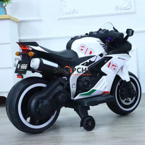 Акумулаторен мотор 666 с 12V батерия, меки гуми и кожена седалка.