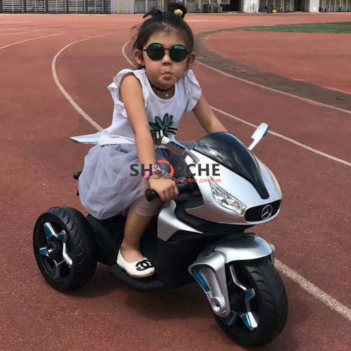 Акумулаторен мотор Mercedes Shadow с пластмасови гуми и кожена седалка.