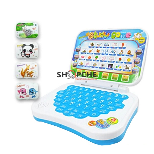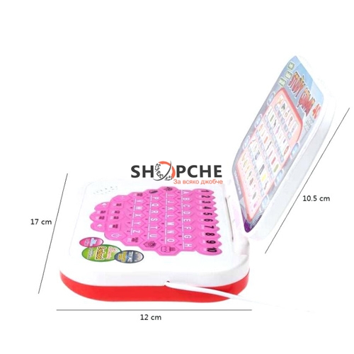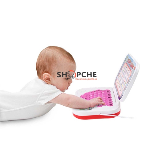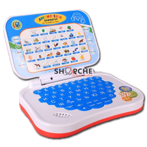 По интерактивен начин лаптопът за деца, обучава детето като в същото време го изпитва за азбуката, цифрите и имената на предмети, започващи с всяка буква от азбуката!