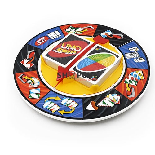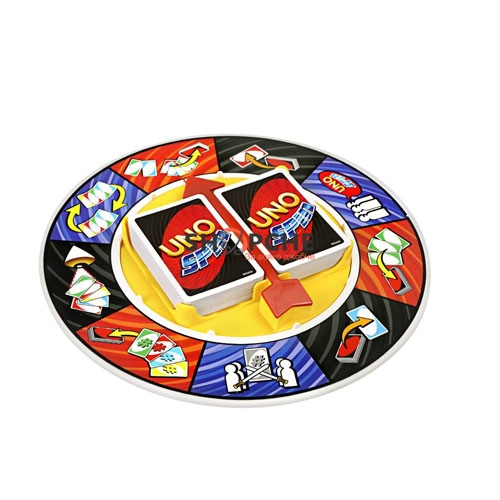 Тестето Uno съдържа специални карти с команди: „Пропусни“, „Обърни реда“, Изтегли карта“ и др., както и spin карти, които завъртат колелото и предизвикват късмета на участниците;