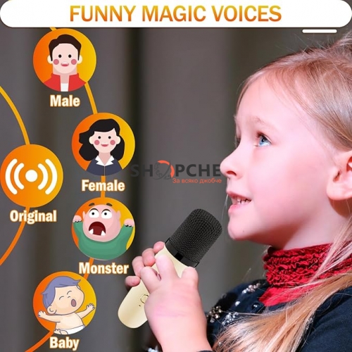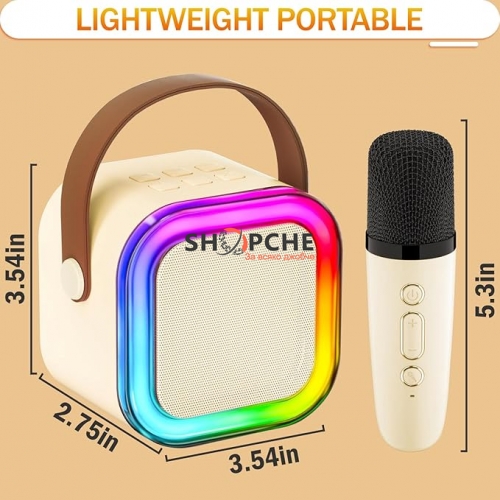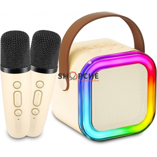 Превърнете всяко събиране в истинско шоу с нашата мини караоке машина за деца – перфектният подарък за малки певци и любители на музиката. С 2 безжични микрофона, модерна Bluetooth 5.0 връзка и пъстри LED светлини, тази караоке система носи настроение на всяко парти, рожден ден или семейно събиране.