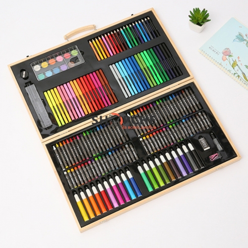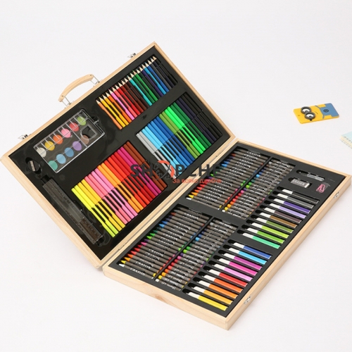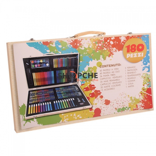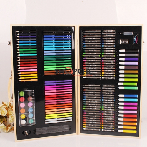 Той всключва всички компненти за рисуване събрани в красива дървена кутия тип куфар.