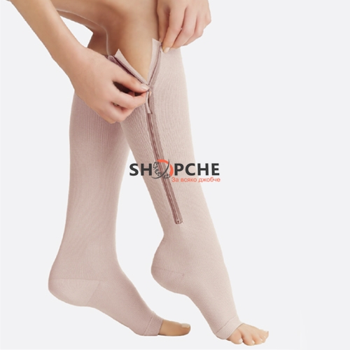 Чорапите са създадени по иновативната компресионна система и се закопчават лесно, чрез цип.