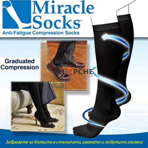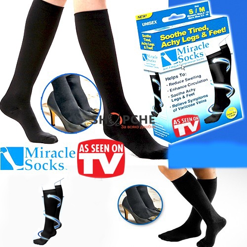 Компресионните чорапи Magic Socks са изработени от удобна и еластична материя. Просто ги обуйте и вижте резултата.