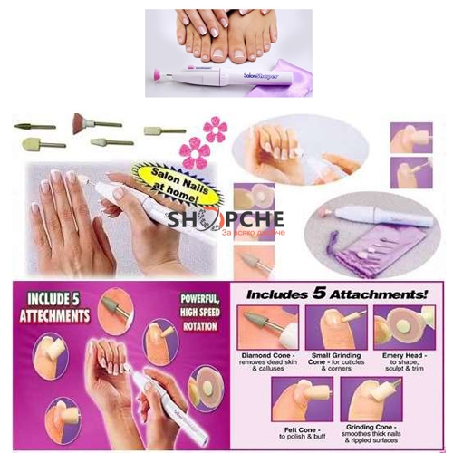 Salon Shaper е безопасен и лесен за употреба уред за оформяне на нокти, кожички и премахване на мъртва кожа!