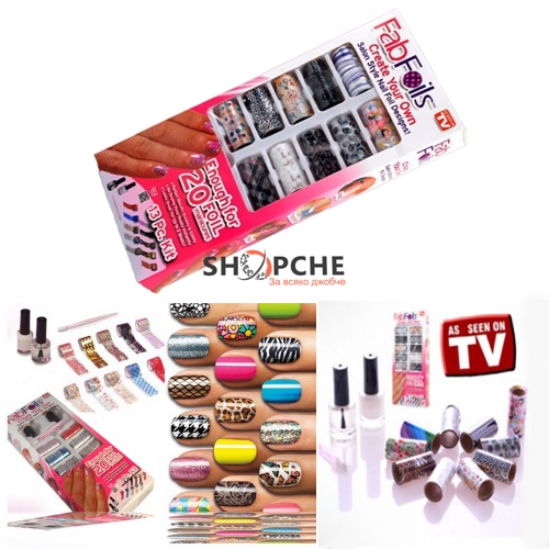 Край и на разцапаните нокти и разваления маникюр „ в последния момент”. Тук е революционния Fab Foils – комплект за професионален маникюр у дома. Бързо, лесно и в удобно за вас време можете да си направите професионален маникюр и педикюр. Винаги перфектни резултати за минути!