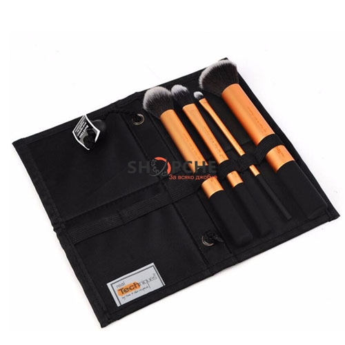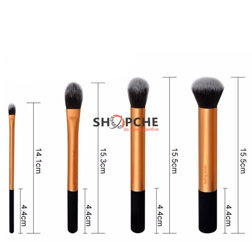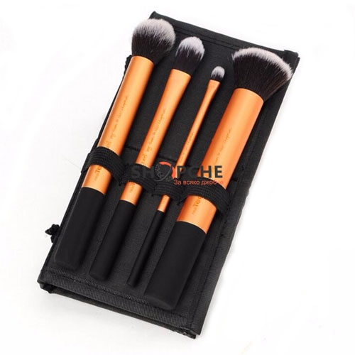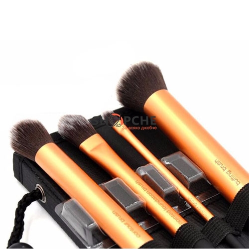 Комплектът съдържа четири пълноразмерни четки в калъф със стойка.