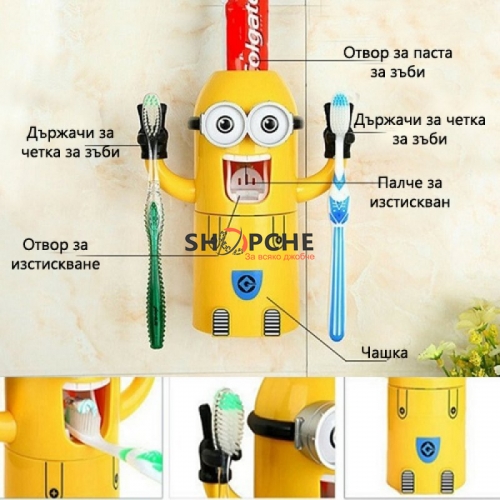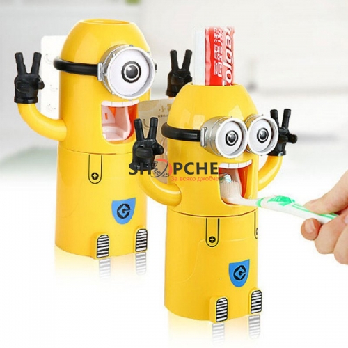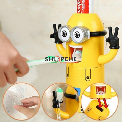 Диспенсъра за зъби Миньон е толкова лесен за употреба- просто докоснете с четката за зъби и пастата за зъби сама ще потече!