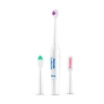 Комплектът включва не една, а две четки за зъби, всяка от кояо с три накрайника, диспенсър за паста за зъби и поставка за четки за зъби!
