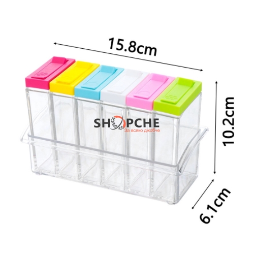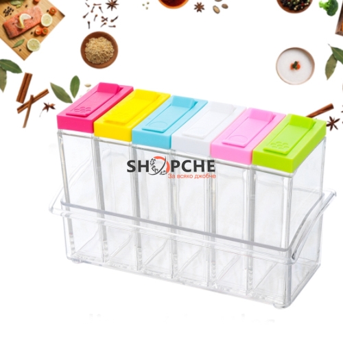В тези контейнерчета за подправки можете да подредите любимите си подравки и да ги съхранявате на едно място, благодарение на стойката от комплекта.