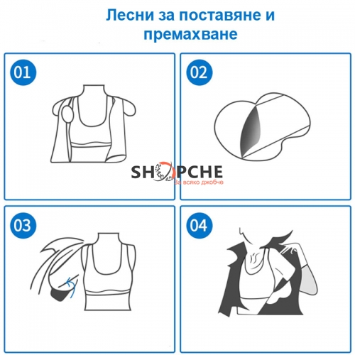2. Поставете протектора с лепящата страна към дрехата точно при шева на подмишницата.