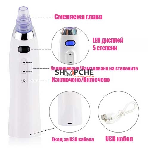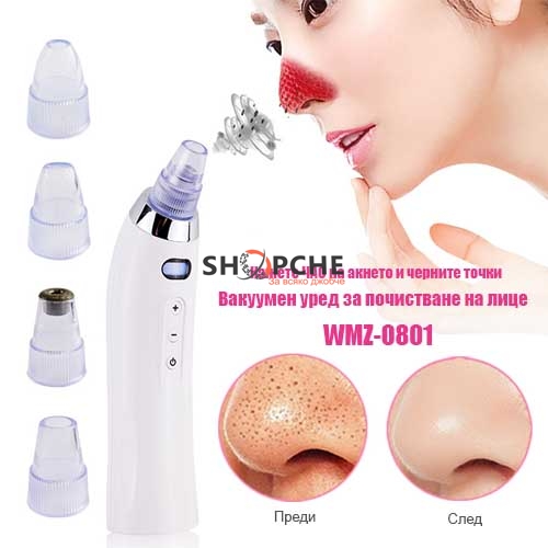 Представяме Ви вакуумен уред за почистване на лице Beauty Skin Care 0801 този уред за почистване на лице със засмукване е много ефикасен за почистване на лицето в дълбочина. Той премахва черните точки и най-трудните за отстраняване замърсявания, като в резултат кожата е професионално почистена, гладка и блестяща.