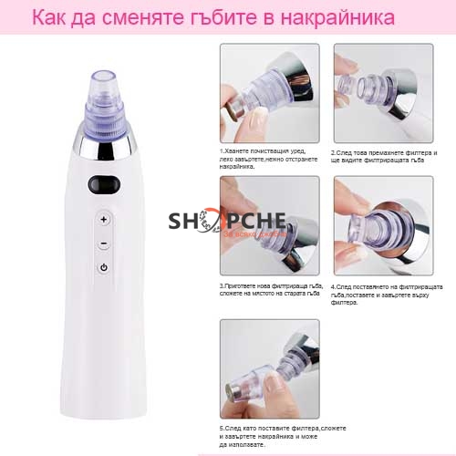 В комплекта са включени 4 вакуумни приставки в зависимост от зоната на приложение.
