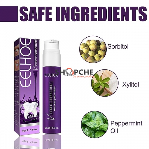 Съвет за вас: За максимални резултати, комбинирайте нашия лилав гел с нашия зъбен прах и писалка за избелване на зъби. Разкрийте най-добрата версия на вашата усмивка!