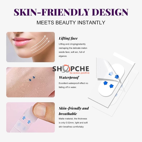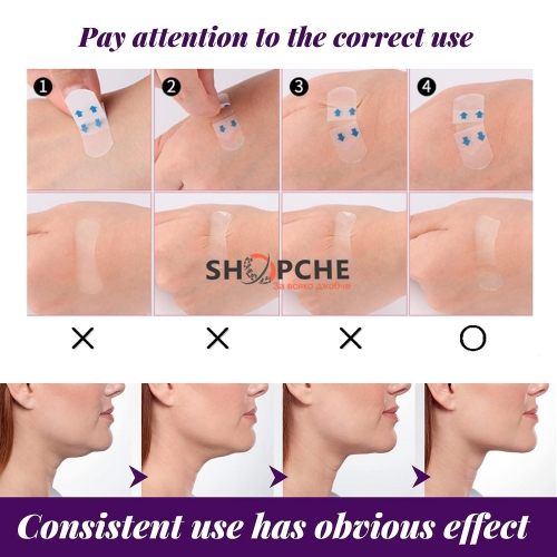 Многофункционални: Тези лифтинг лепенки са подходящи не само за лицето, но и за шията, брадичката, околоочния контур и зоните на челюстта, като ви придават по-стройна линия и младежки вид.