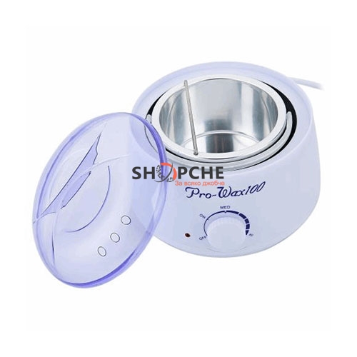 Нагревателят Pro Wax 100 има две степени на загряване и нагревателна основа до 360º разтопяване на восъка! Вътрешният алуминиев съд се премахва лесно и се почиства.