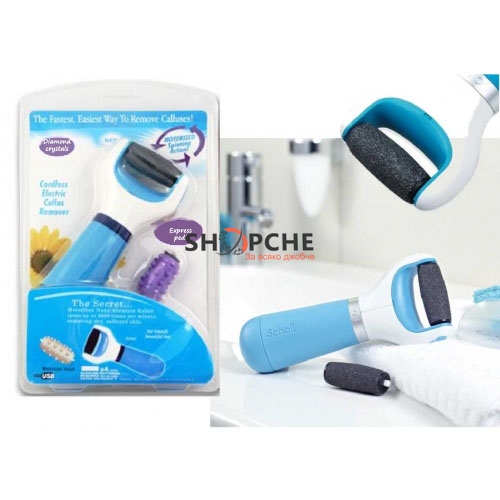 - Новата синя пила с диамантени кристали е електрическа ролкова пила за премахване на загрубялата кожа по петите на краката.