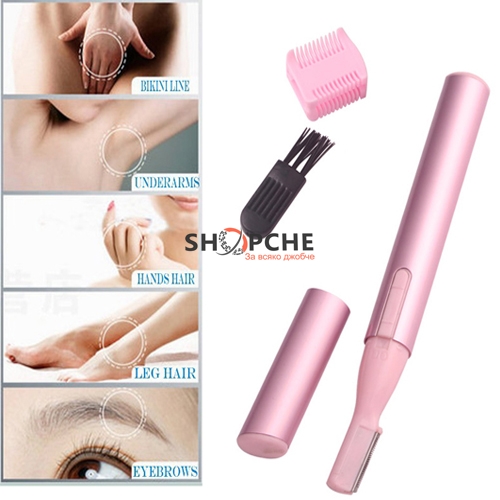 Този портативен дамски тример е удобен за употреба, изработен в розов цвят от алуминий. Главата е снабдена с острие, а уредът разполага с бутон за лесно включване и изключване.