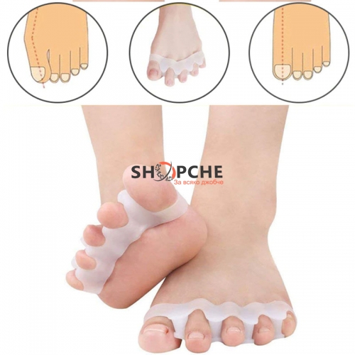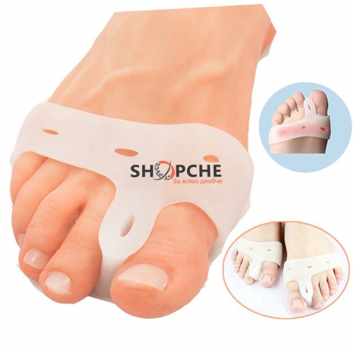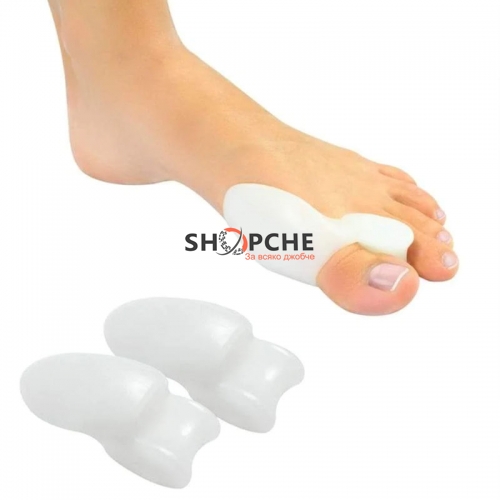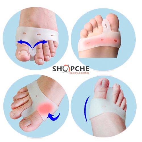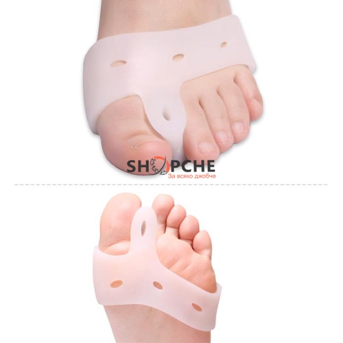 Този иновативен продукт е изработен от тънък и мек силикон, който нежно помага за изправянето на притискането от обувките пръсти на краката и за предотвратяването на подутината върху ставата в основата им.