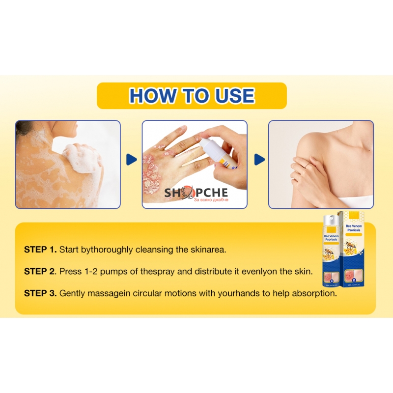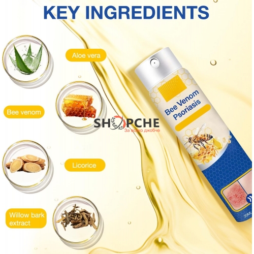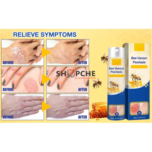 👉 Присъедини се към Viber общносттаBee Venom Psoriasis Spray е създаден за нежна и практична козметична грижа при чувствителна кожа, склонна към сухота, опъване и дискомфорт. Леката спрей формула се нанася лесно, без втриване, и попива бързо, без да оставя мазни следи.