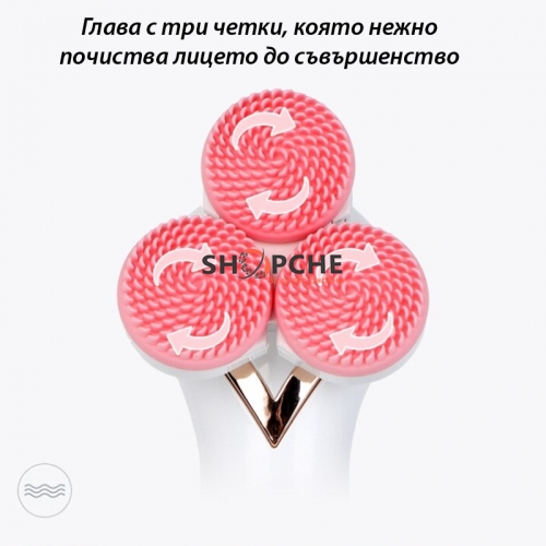 Тя разполага с тройна глава, която нежно почиства лицето ви от замърсяванията натрупали се през деня.