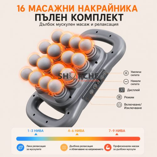 ✔ 16 сменяеми накрайника – за различни мускулни групи