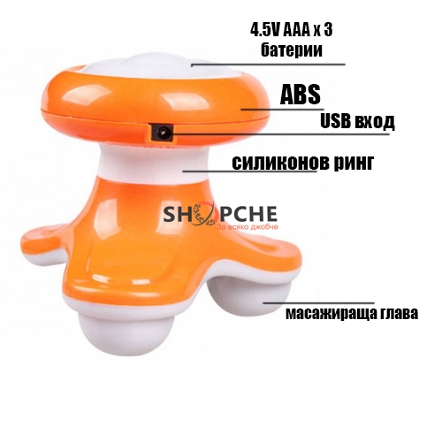 Преносим USB мини масажор за тялото има три заоблени крака, вибрации, които осигуряват релаксиращ масаж на цялото тяло .