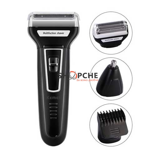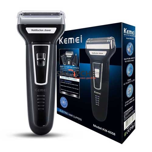 Представяме Ви Kemei KM-6558 машинка за бръснене и подстригване за мъже, която разполага с 3 накрайника – бръснене, подстригване и почистване на космите от носа и ушите.