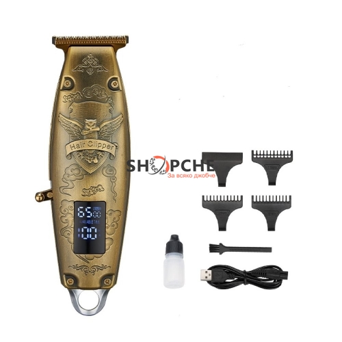 Машинката притежава стоманено острие, за да осигури бързо и ефективно бръснене или подстригване. Машинката включва три приставки с различни размери и предпазител на острието. Машинката се захранва посредством USB кабел включен в комплекта. Дизайнът на тримера е шокиращ и елегантен и подканва за прецизна работа при оформяне на брада, мустаци и ефектна мъжка прическа.