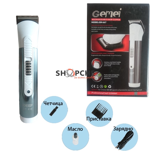 Gemei GM-667 работи безжично, с презареждаща батерия, която можете да сменяте.