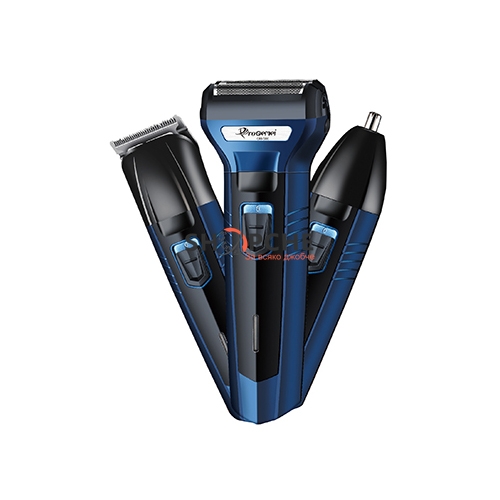 Сменяеми глави (бръснач, патилер и глава за рязане на космите на носа и ушите). Ергономичен дизайн с меко докосване
