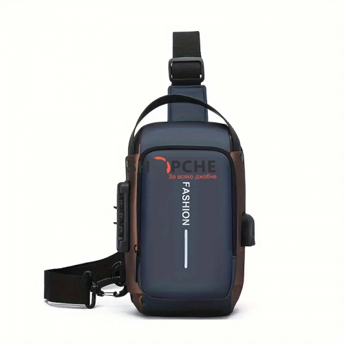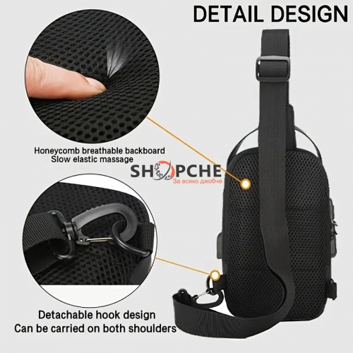 👉 Присъедини се към Viber общносттаУдобна и стилна мъжка чанта за гърди с USB порт. Подходяща за пътуване, градски стил и ежедневие. Водоустойчива, с голям капацитет.