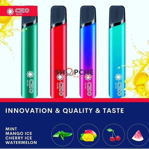 👉 Присъедини се към Viber общносттаCEO VAPE е електронно наргиле. Предварително заредено с течност , захранвано от батерия и управлявано само от въздушния поток при дръпване. Не е нужно да го пълните, не е необходимо да го зареждате и дори не е необходимо да го включвате, то е винаги на ваше разположение и готовo за употреба.
