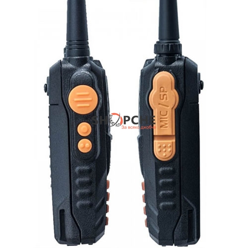 Корпусът на радиостанцията е изработен от устойчива пластмаса.