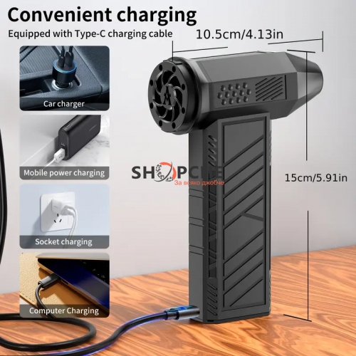 👉 Присъедини се към Viber общносттаПредставяме ви безжичния въздушен уред NKNQ – компактно и мощно решение за премахване на прах и замърсявания! Със своята невероятна скорост от 130 000 оборота в минута, този уред лесно почиства клавиатури, компютри, автомобили, мотоциклети и дори двора.