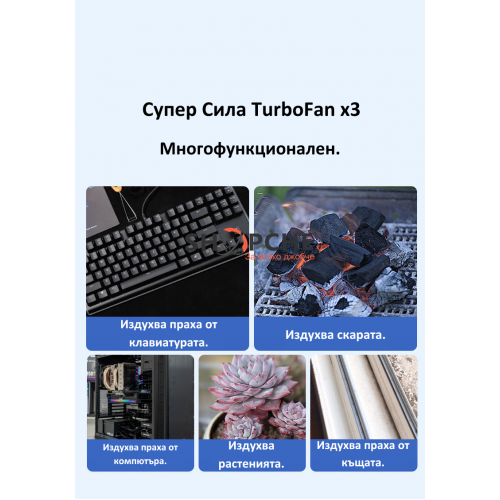 Благодарение на регулируемата струя и презареждащата се 4000 mAh батерия, можете да го използвате навсякъде, без нужда от кабели. Подходящ за сухо почистване и безопасен за чувствителна техника.