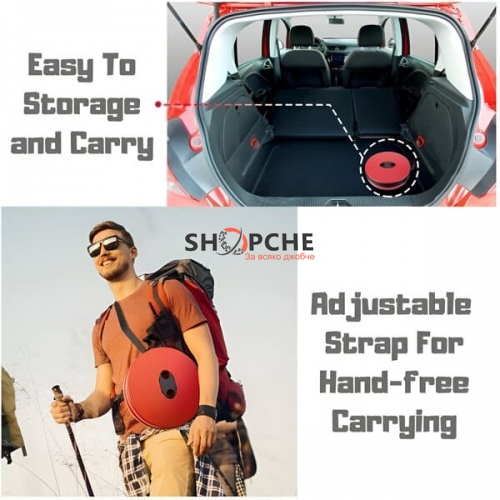 Лесно съхранение: Компактният размер позволява лесно съхранение в багажници, раници, чанти и тесни пространства.